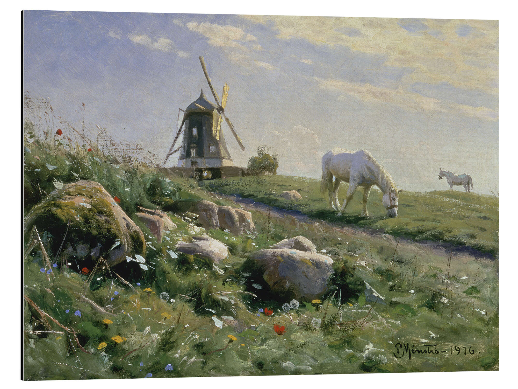 Posterlounge   Quadri   Verde   Peder Mørk Mønsted   Stampa su alluminio Grazing horses on a summer meadow, 1916