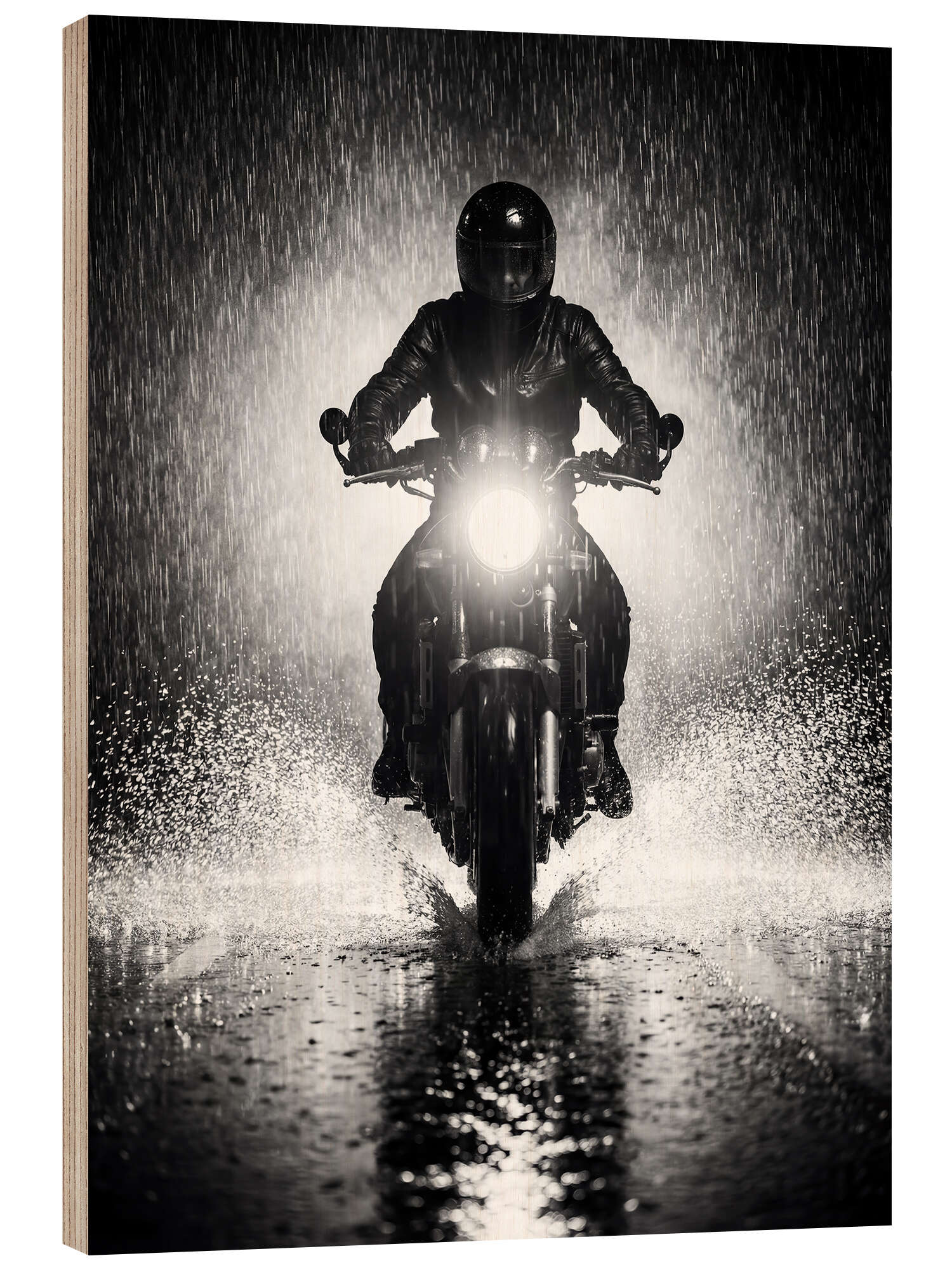 Posterlounge   Quadri   Nero e Bianco   Andreas Magnusson   Stampa su legno Motorcycle In the Rain