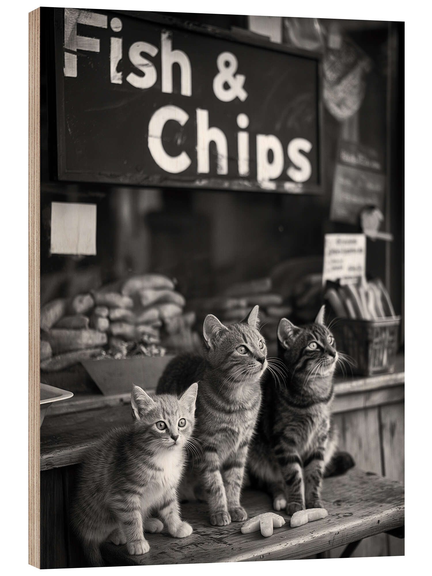 Posterlounge   Quadri   Nero e Bianco   Stampa su legno Hungry Kittens