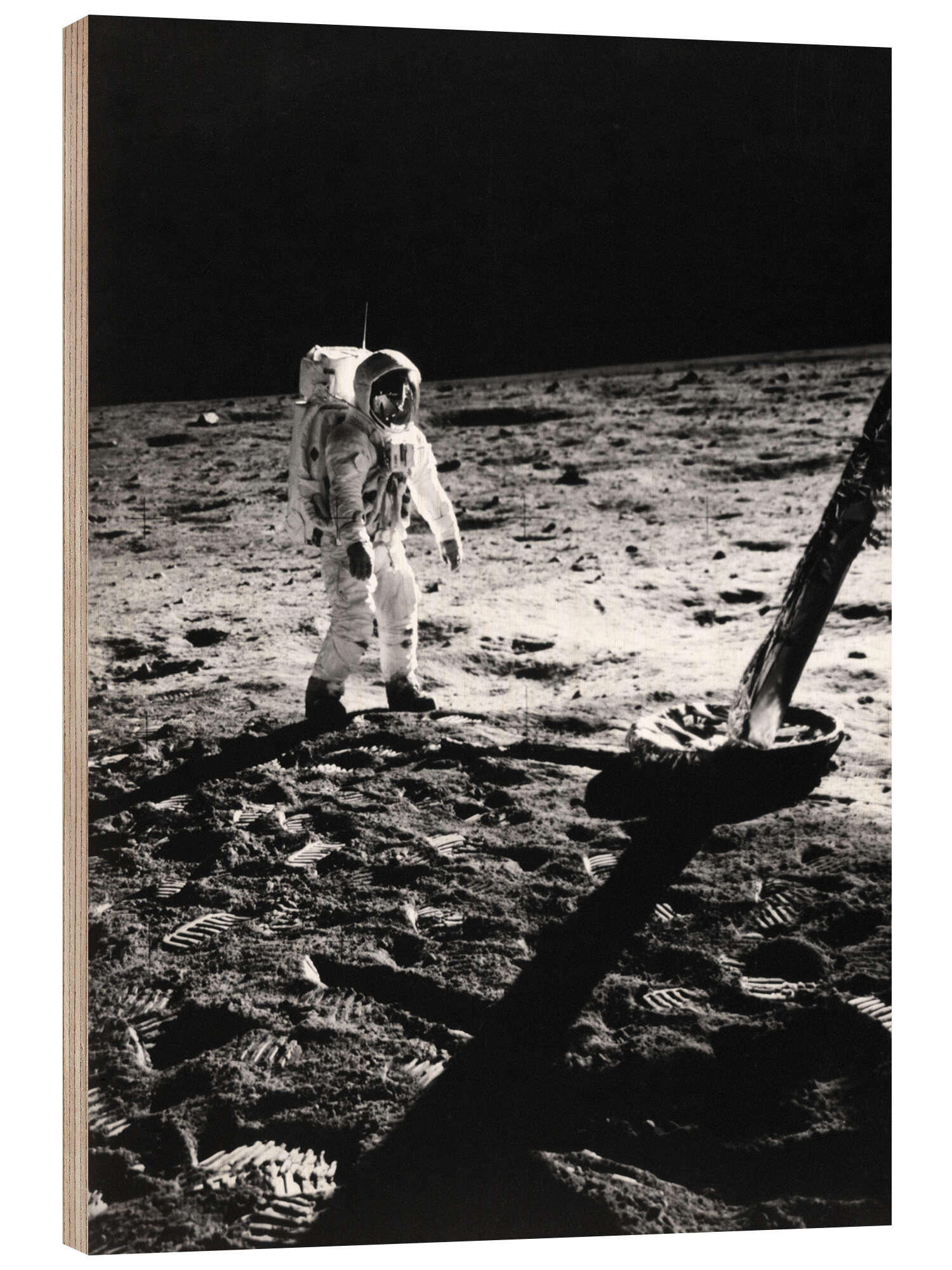 Posterlounge   Quadri   Fotografia   Nostalgia   Stampa su legno Astronaut Buzz Aldrin in a spacesuit on the moon