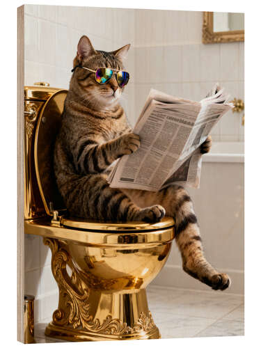 Posterlounge   Quadri   Cose divertenti   Softlight Boutique   Stampa su legno Cat on the golden toilet